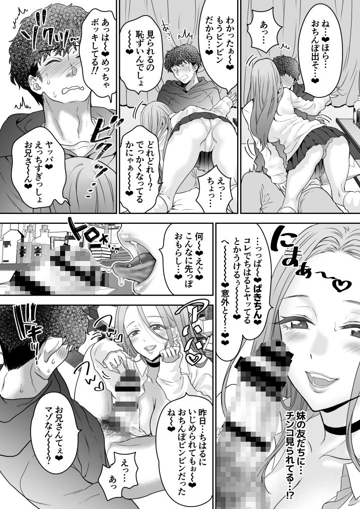 なまいきなJKギャルの妹とわちゃわちゃ甘いえっちするシリーズものです。かわいくて強気なギャルJKのちはる。流されやすくてだらしない兄の一樹は、今日も妹JKのエッチで強引な誘いに流され、、、。意地悪な口調で言葉責めされつつのJK手コキが好きな方!生意気に騎乗位で腰を振りまくるJKが好きな方!本当はおにいちゃん子のあまえんぼうJKが最後には中だしおねだりします。ギャル妹に精液を絞られ果てる日々の兄ですが、ある日おせっせ中の姿を妹の友だちに目撃されてしまい、、!今回は、兄の部屋に妹の友達ギャルたちまで居座って、やたらとえっちな誘惑を仕掛けてきます。妹の居ない隙にすり寄るえっちギャル。果たして兄の貞操は守られるのか?